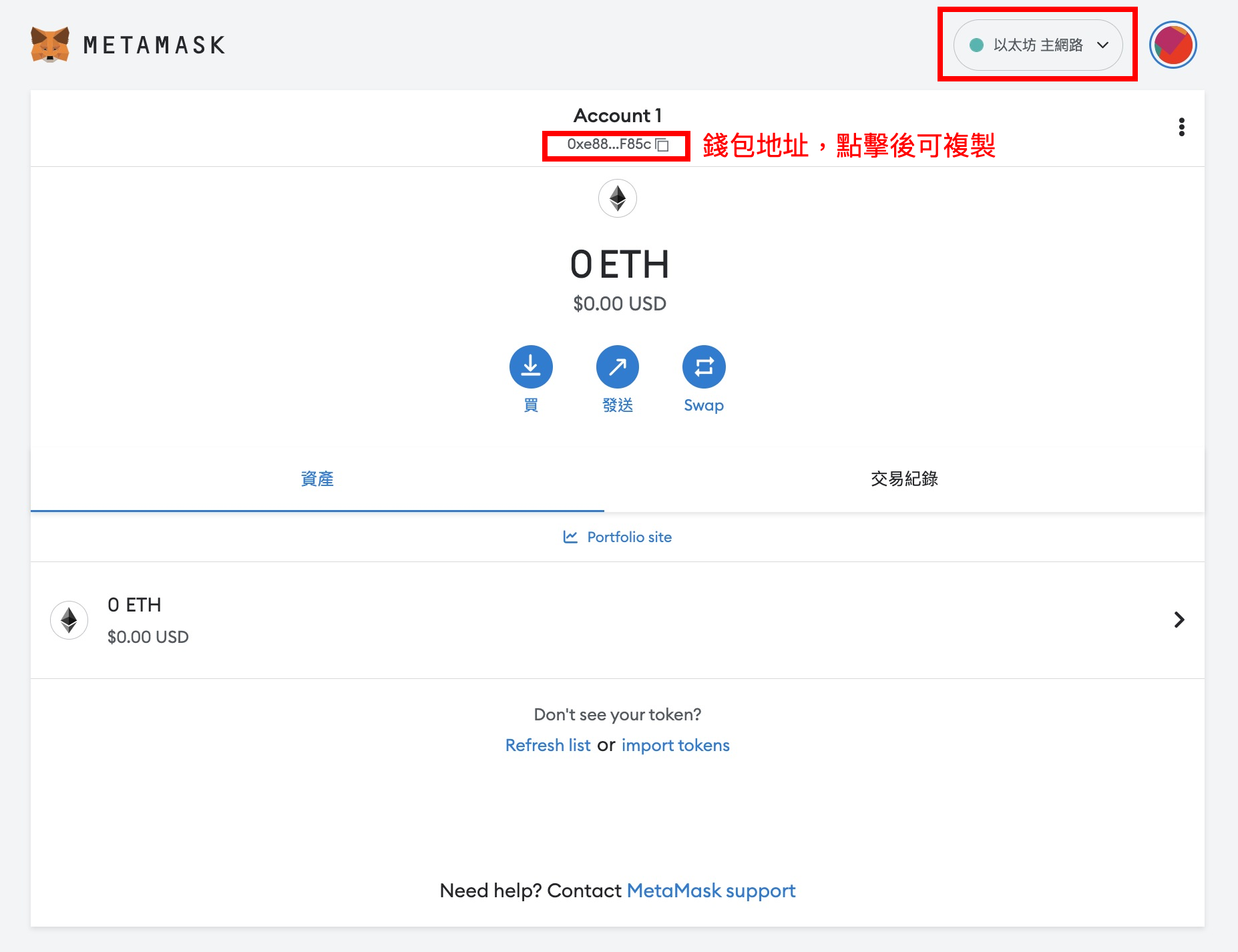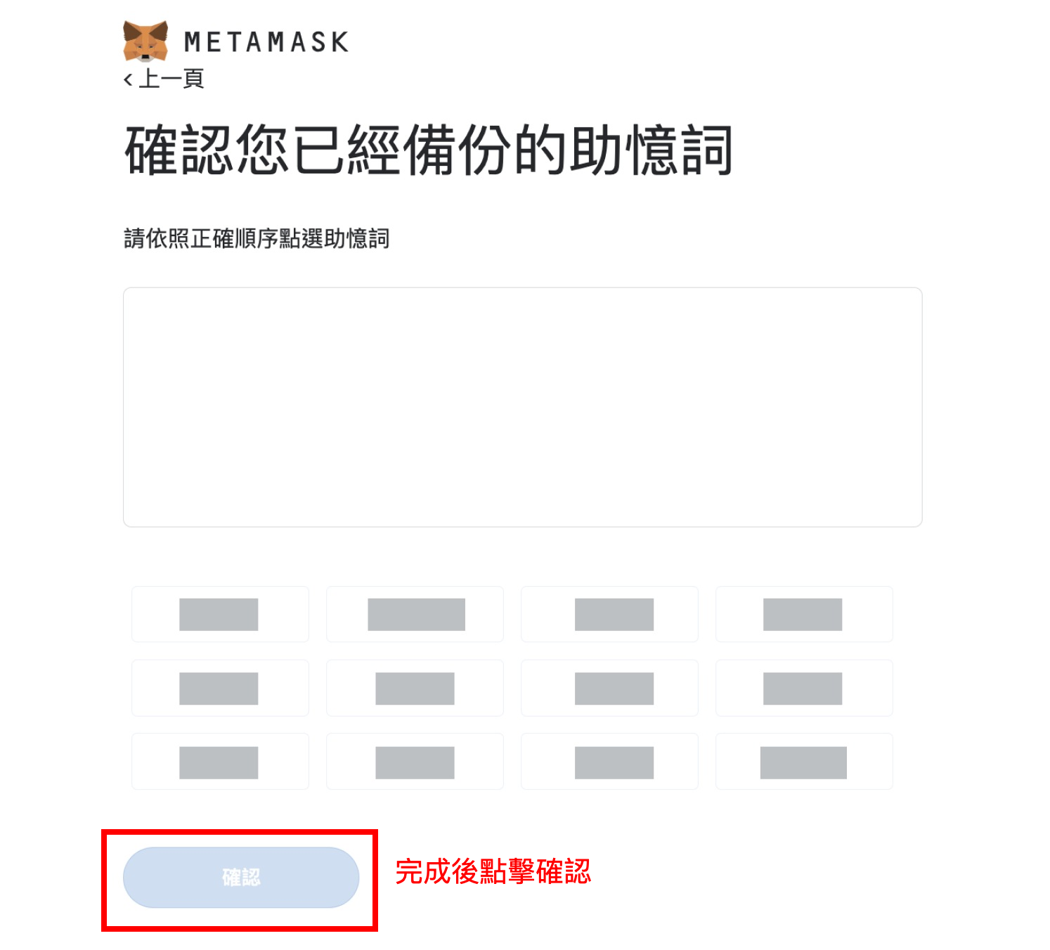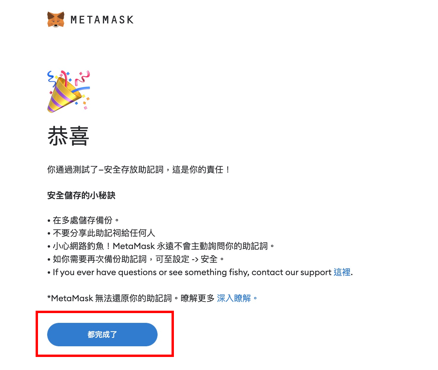 恭喜您,已完成創建 MetaMask 錢包!